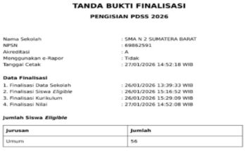 Selasa, 27 Januari 2026 Red : Ry123 Sman2sumbar.sch.id. Kab. Solok — Selasa, 27 Januari 2026, Tim PDSS SMA N 2 Sumatera Barat berhasil menuntaskan finalisasi PDSS 2026 lebih awal dari batas …