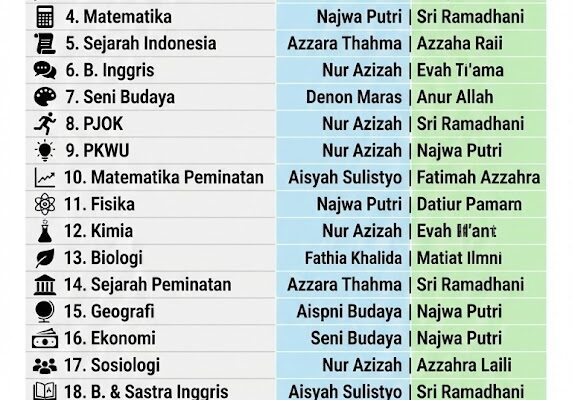 18. Mata Pelajaran Bahasa dan Sastra Inggris
