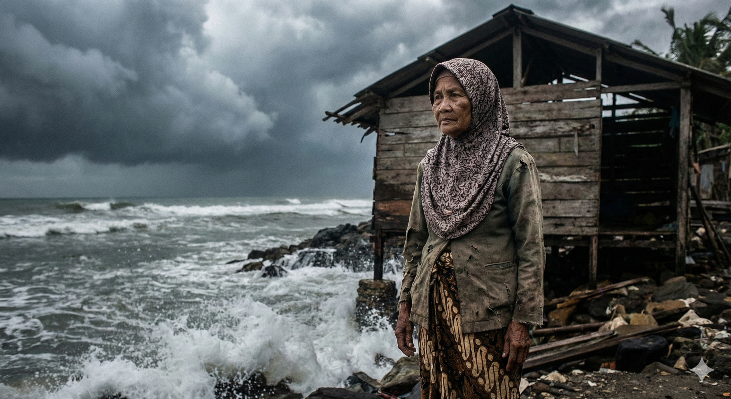 Aku melihat ibu tua itu ia masih duduk terpaku melihat keramaian dan menatap kearah laut dengan wajah sendunya. Kasihan sekali, apakah yang membuat ibu itu sedih. Karena takut dimarahi ayah, akupun pamit pulang padanya.
