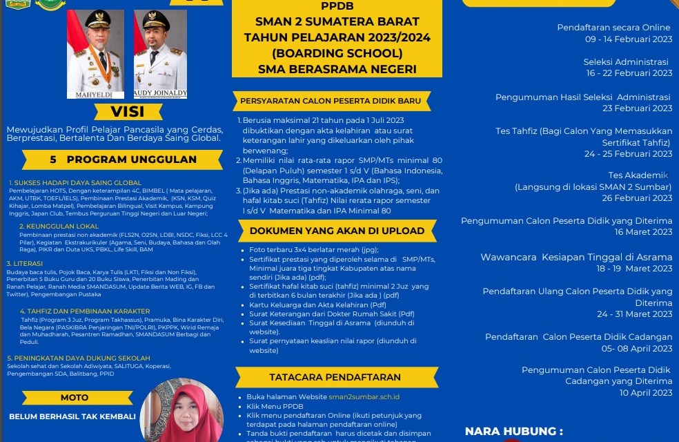 Buruan! Tanggal 9 Februari Pendaftaran Online PPDB di SMA N 2 Sumatera Barat di mulai